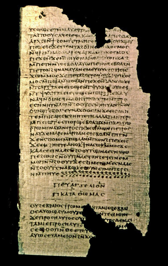 Các mảnh giấy được lấy từ 13 mã vellum buộc da thuộc đã được chôn ở Ai Cập và được tìm thấy vào năm 1945.