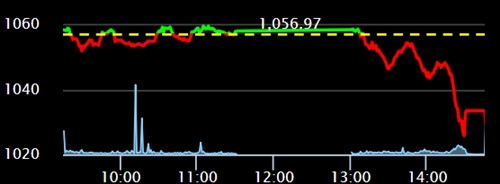 Vừa mở cửa phiên chiều, thị trường bất ngờ lao dốc thẳng đứng tương tự như các phiên giảm mạnh cách đây không lâu. Trong khi lệnh mua vào yếu ớt thì áp lực bán ngày càng tăng, đặc biệt với các mã trong nhóm 30 cổ phiếu vốn hóa lớn nhất.
