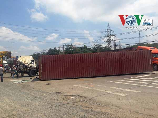 Đến trước ngã 3 trường Đại học Nông Lâm (phường Linh Trung, quận Thủ Đức) tài xế cho xe quay đầu về hướng ngược lại. Do cua gấp làm thùng container bị mất cân bằng rồi lật nhào xuống đường. Vụ việc làm thùng xe đập mạnh vào cabin khiến bẹp dúm. Tài xế thoát chết đầy may mắn, được người dân “giải cứu”.
