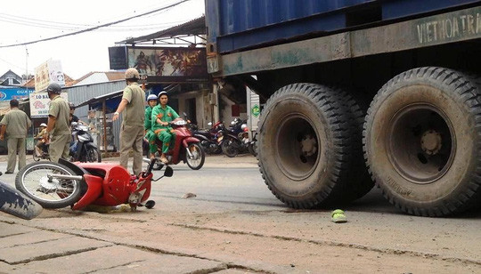 Đón con học về, mẹ bị xe container cán trọng thương. Vụ tai nạn xảy ra vào khoảng 12h ngày 20/9, trên đường Nguyễn Duy Trinh quận 9, TP HCM).