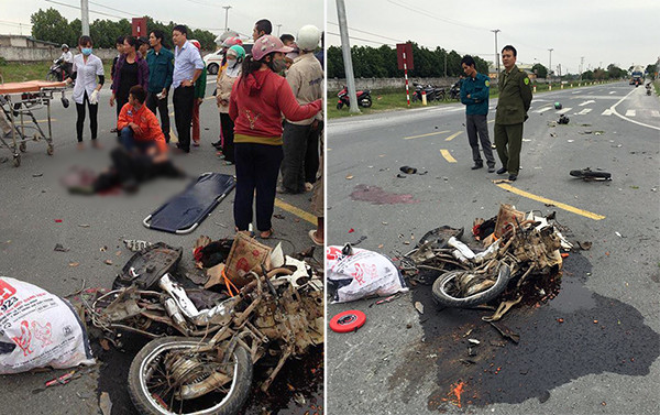 Xe bồn nghiền nát xe máy trên quốc lộ 1. Vụ tai nạn xảy ra vào khoảng 12h ngày 1/11, trên quốc lộ 1, đoạn tránh TP Phủ Lý (tỉnh Hà Nam).