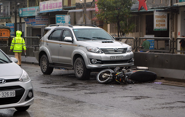 Theo tin tức trên tờ CAND, vào thời gian trên, một phụ nữ khoảng 20 tuổi điều khiển xe máy chạy ngược chiều bên phần đường dành cho xe chạy hướng Nam – Bắc. Do gặp trời mưa đường trơn trượt, hạn chế tầm nhìn nên chiếc xe ô tô 5 chỗ BKS - 36592 lao tới tông phải. Tiếp đó, chiếc xe ô tô tải chạy phía sau ô tô 5 chỗ, do không giữ được khoảng cách an toàn nên đã đâm mạnh vào phần đuôi xe ô tô này.Vụ tai nạn khiến người điều khiển xe máy bị thương nặng. Chiếc xe ô tô 5 chỗ bị hư hỏng nặng phần đuôi.