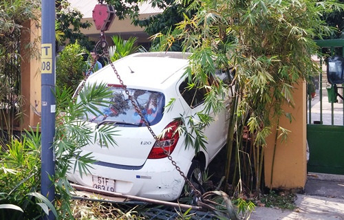 Nữ tài xế lùi ôtô tông sập hàng rào. Vụ tai nạn xảy ra lúc 10h ngày 29/1 tại trụ sở Chi cục kiểm tra sau thông quan thuộc Cục Hải quan TP HCM (số 51 Trường Sơn, phường 2, quận Tân Bình, TP HCM).