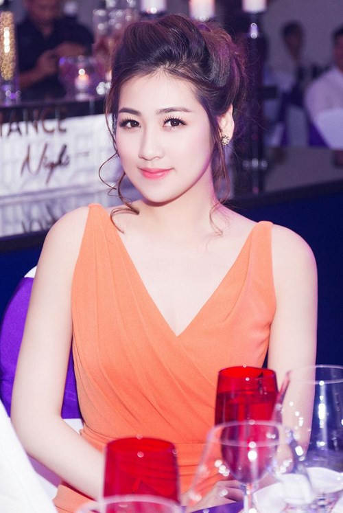 Á hậu Tú Anh lựa chọn bộ đầm dạ hội màu cam ôm sát cơ thể tôn lên đường cong quyến rũ và làn da trắng sứ không tì vết. Thời gian gần đây Tú Anh giảm cân khá nhiều chính vì thế cô rất tự tin khi diện váy áo quyến rũ, thần thái cũng trở nên rạng rỡ và chuyên nghiệp hơn.