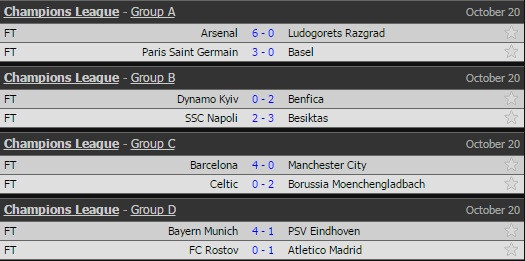 Bayern Munich vùi dập PSV Eindhoven 4-1. Tiếp PSV Eindhoven trên sân nhà, Bayern Munich dễ dàng có chiến thắng 4-1 nhờ các pha làm bàn của Thomas Mueller, Joshua Kimmich, Robert Lewandowski và Arjen Robben. Cũng ở bảng D, Atletico Madrid thắng chủ nhà FTFC Rostov 1-0 nhờ pha làm bàn của Yannick Ferreira-Carrasco để tiếp tục dẫn đầu bảng.