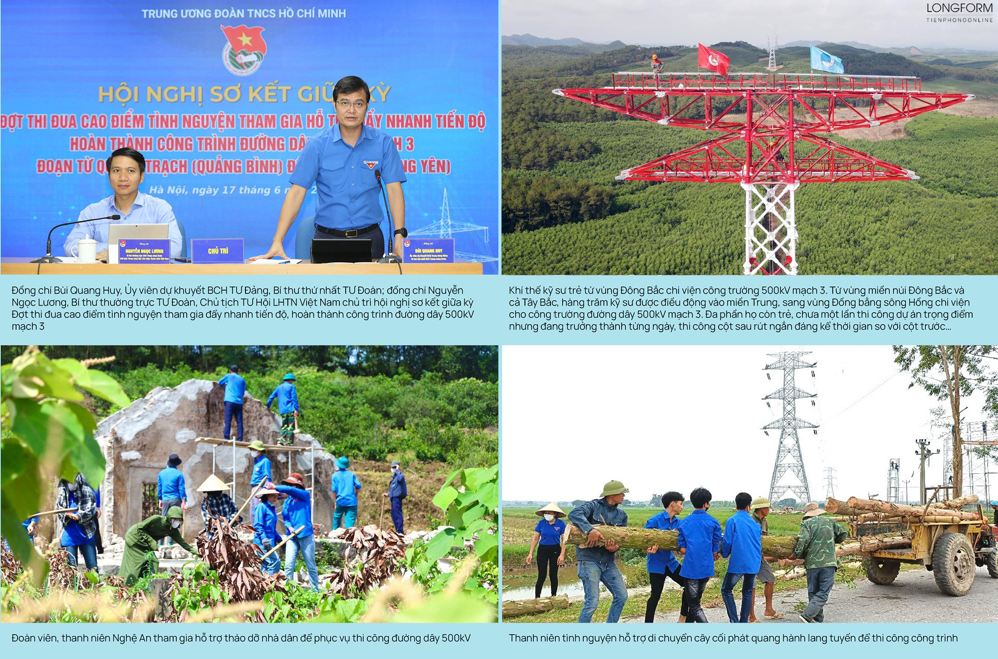 9 đơn vị có đường dây 500kV đi qua gồm Quảng Bình, Hà Tĩnh, Nghệ An, Thanh Hoá, Ninh Bình, Nam Định, Thái Bình, Hải Dương, Hưng Yên đã triển khai 465 đội hình với 6.302 thanh niên tình nguyện tham gia hỗ trợ giải phóng mặt bằng tuyến hành lang đường dây 500 kV; hỗ trợ thi công vận chuyển vật liệu, kéo dây điện tại các khoảng cột...