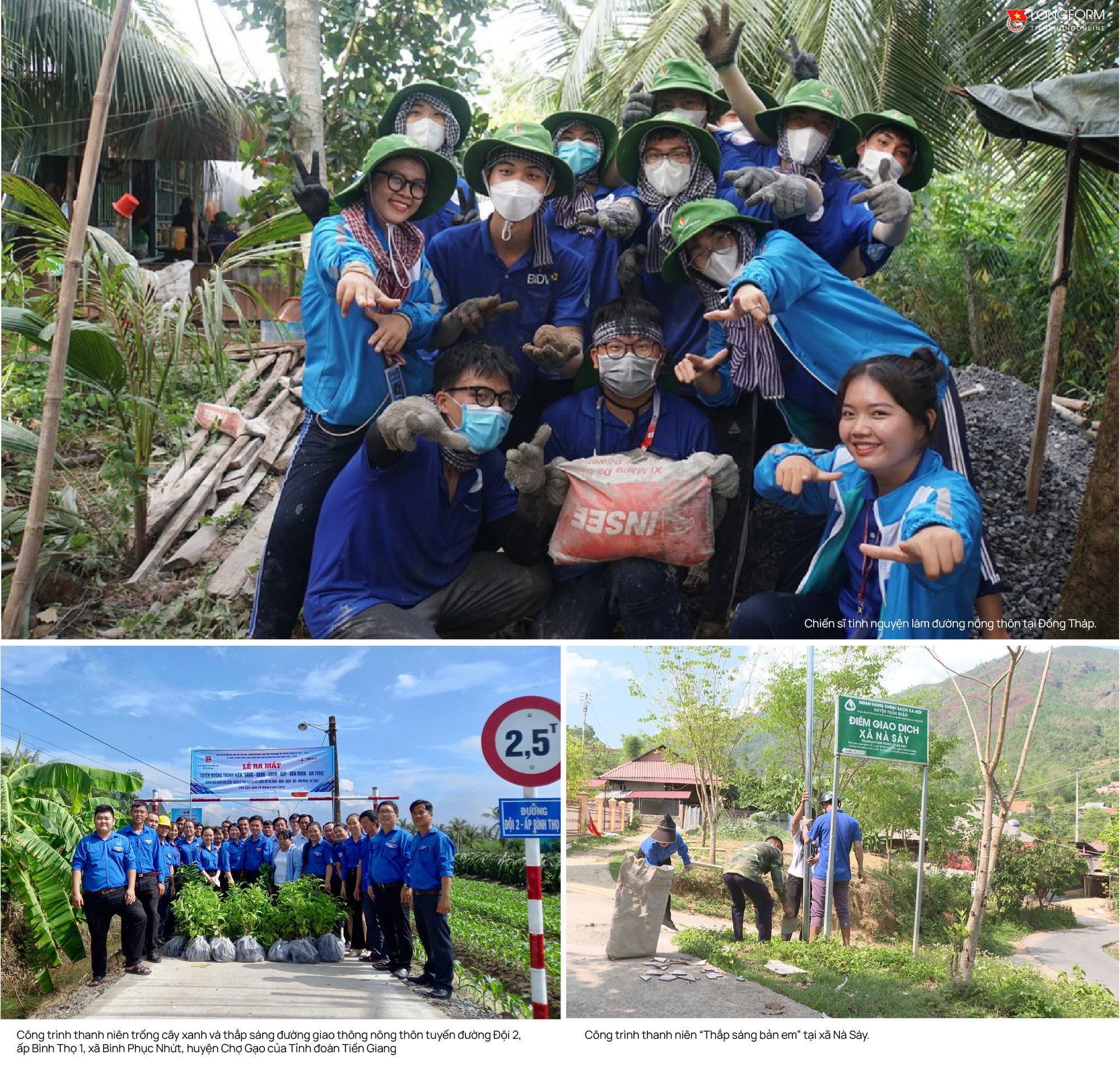 Đồng Tháp: Tổ chức 98 lượt ra quân thu gom, xử lý rác thải tại các điểm đen, điểm tồn đọng nước thải, rác thải; phát hoang bụi rậm hơn với tổng chiều hơn 17 km; khơi thông lòng kênh rạch, hướng dẫn, vận động gần 4.600 người dân bỏ rác đúng nơi quy định, triển khai hơn 168 mô hình “Đổi rác lấy quà”; tổ chức hơn 31 hoạt động khám bệnh, cấp phát thuốc miễn phí cho người dân và các đối tượng chính sách; tổ chức 115 hoạt động dọn dẹp, sửa chữa nhà ở, vườn tược; thăm hỏi, tặng quà cho hơn 562 gia đình thương binh liệt sỹ, gia đình có công với cách mạng; xây mới 38 nhà nhân ái, nhà tình nghĩa, nhà khăn quàng đỏ; trao tặng hơn 2.381 suất học bổng cho trẻ em và người dân có hoàn cảnh khó khăn.
