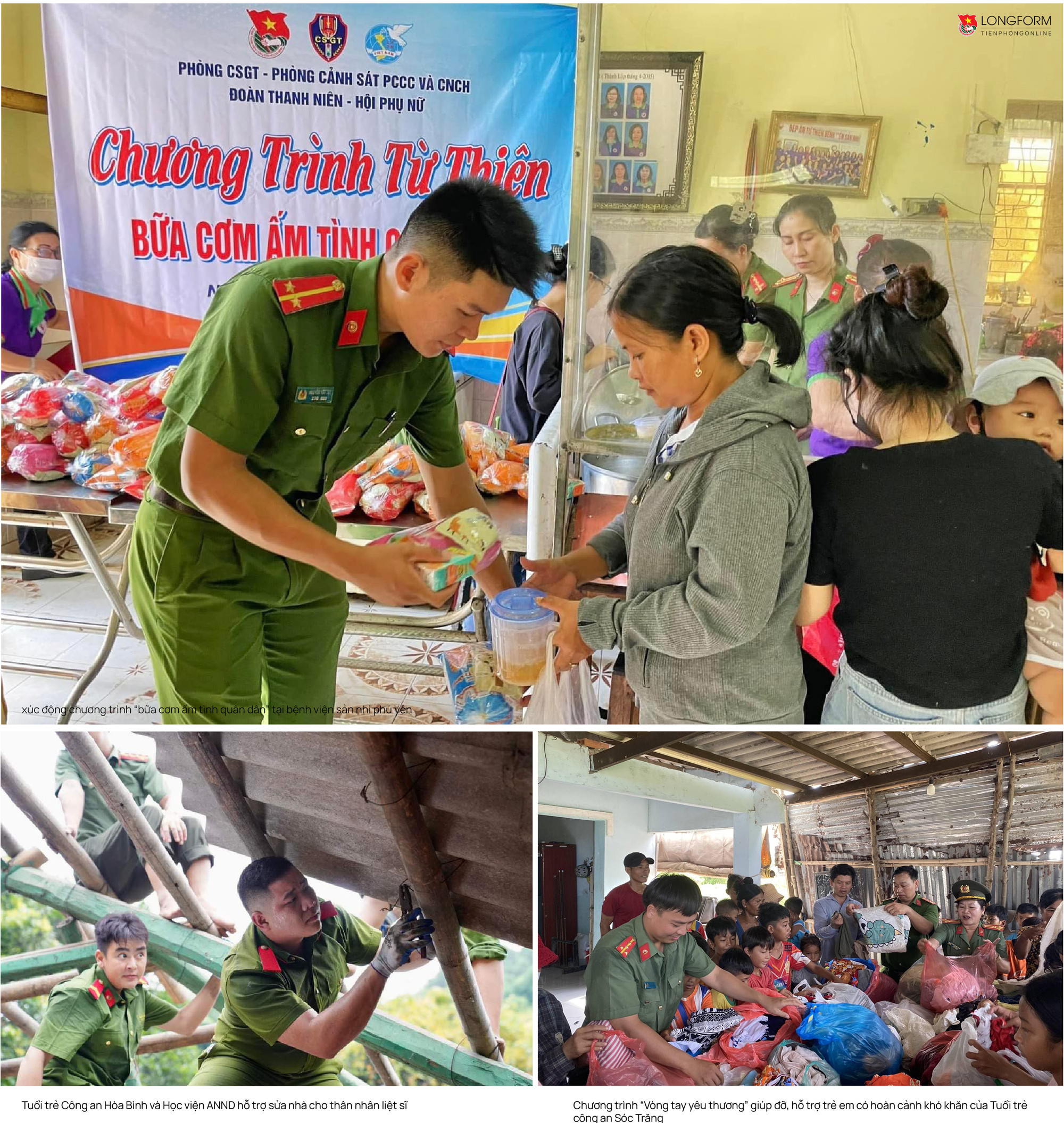 Phú Yên: sáng ngày 30/6/2024, Đoàn Thanh niên, Hội phụ nữ cơ sở 02 đơn vị: Phòng Cảnh sát PCCC và CNCH, Phòng Cảnh sát Giao thông (Công an tỉnh) phối hợp tổ chức chương trình từ thiện "Bữa cơm ấm tình quân dân" tại Bệnh viện sản nhi Phú Yên. Tại chương trình, đoàn viên, hội viên các đơn vị đã cấp phát miễn phí 300 suất cơm, bánh, sữa cho các em nhỏ và người nhà đang lưu trú và điều trị bệnh tại Bệnh viện.
