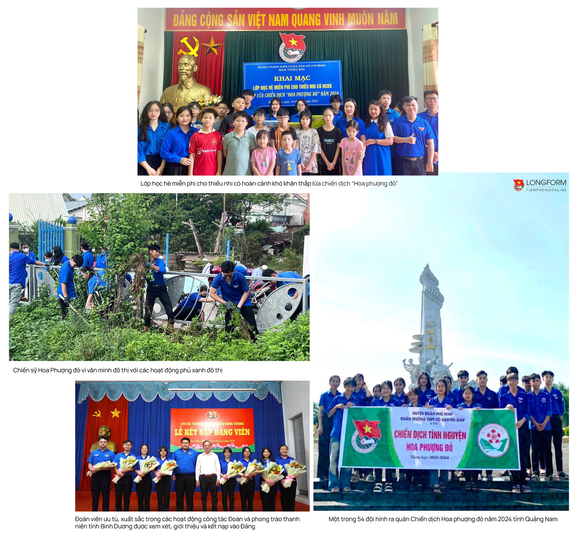 Quảng Nam: 54/54 Đoàn các trường THPT, PTDTNT trên địa bàn tỉnh với hơn 1.500 đoàn viên, thanh niên Quảng Nam hưởng ứng Chiến dịch tình nguyện “Hoa phượng đỏ”. Các Đội hình tình nguyện triển khai nhiều hoạt động ý nghĩa như: thăm, tặng quà cho người có công với cách mạng, gia đình chính sách, học sinh có hoàn cảnh khó khăn; dọn dẹp, vệ sinh khu tưởng niệm, nghĩa trang liệt sĩ; thu gom rác thải, trồng cây xanh trên các tuyến đường nông thôn, vẽ tranh bích họa,... Bên cạnh đó, một số đơn vị còn tổ chức các hoạt động vui chơi, sinh hoạt cho thiếu nhi, chú trọng đến việc rèn luyện các kỹ năng phòng, chống bạo lực học đường, đuối nước, tai nạn thương tích, bạo hành, xâm hại trẻ em.