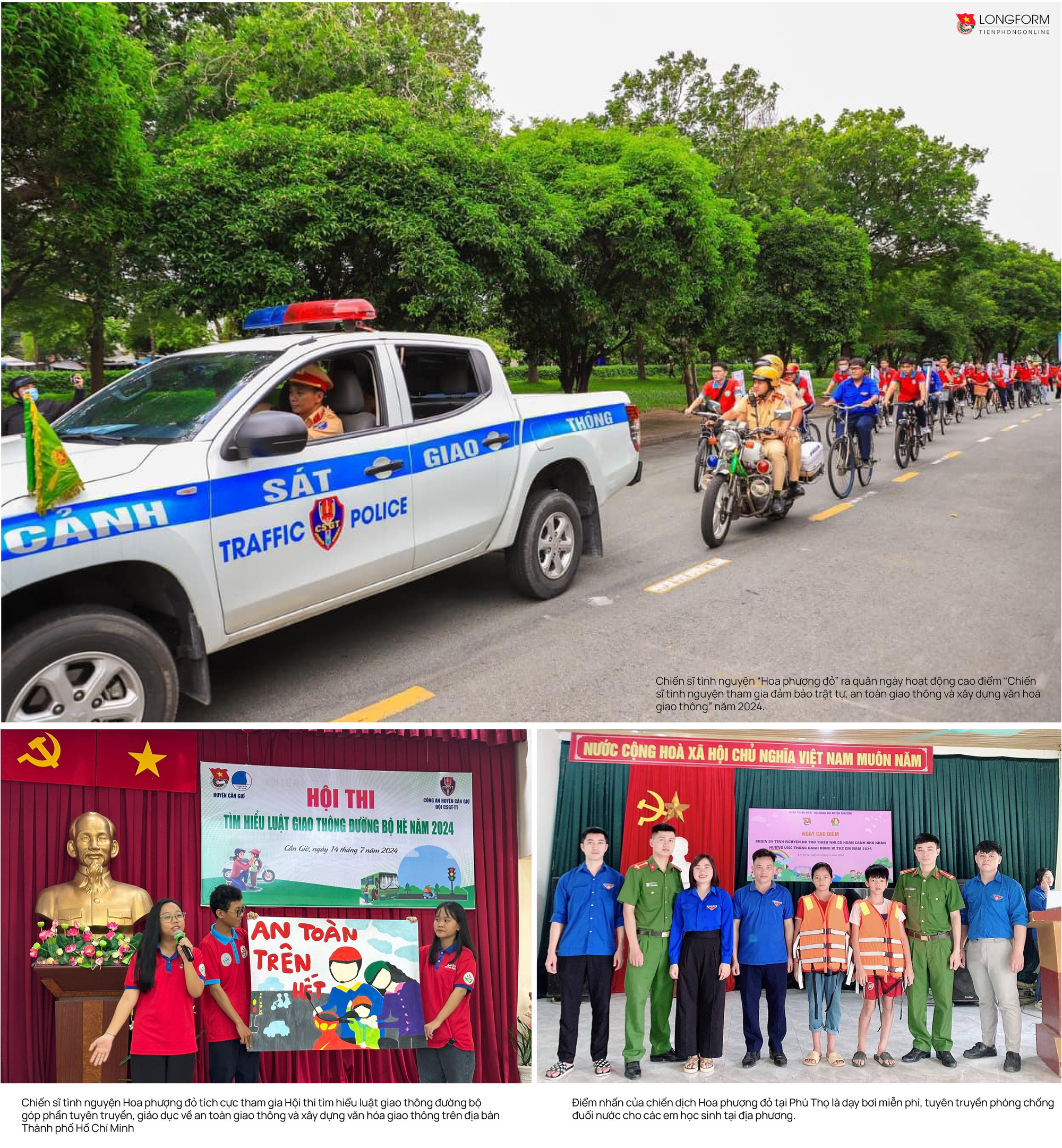 TP. Hồ Chí Minh: Chiến sĩ tình nguyện “Hoa phượng đỏ” ra quân ngày hoạt động cao điểm “Chiến sĩ tình nguyện tham gia đảm bảo trật tự, an toàn giao thông và xây dựng văn hoá giao thông” năm 2024. Trong khuôn khổ ngày hoạt động cao điểm, các chiến sĩ tình nguyện Hoa phượng đỏ đã có các hoạt động thiết thực, ý nghĩa nhằm hưởng ứng trên khắp địa bàn Thành phố phát huy vai trò xung kích, tình nguyện của thanh niên, tham gia đảm bảo trật tự, an toàn giao thông và xây dựng văn hóa giao thông trên địa bàn Thành phố.