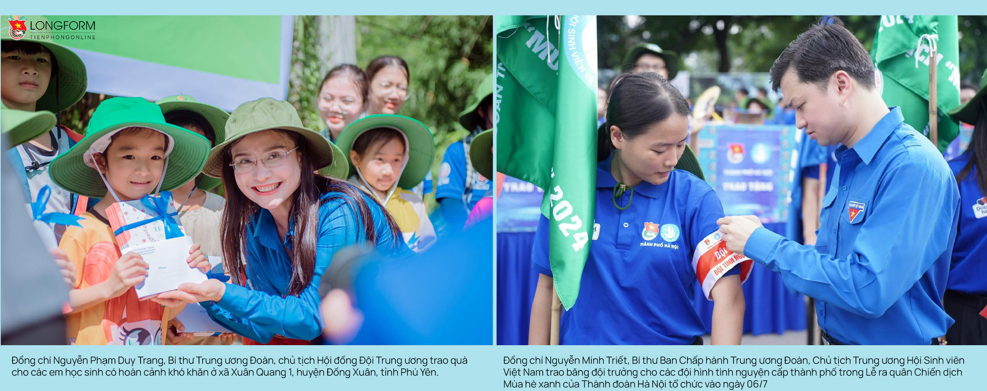 Hà Nội: Hà Nội có hơn 16 nghìn sinh viên ra quân chiến dịch “Mùa hè xanh” 2024 với chủ đề: Sáng mãi ngọn lửa “Ba sẵn sàng”. Đặc biệt, đây là lần đầu tiên, Hội Sinh viên Việt Nam TP Hà Nội tổ chức lễ xuất quân cho các đội hình sinh viên tình nguyện xuất phát đến thẳng các tỉnh thành, các địa bàn mà đội hình hoạt động. Năm nay, chiến dịch với nhiều sự đổi mới, đảm bảo sự điều phối chặt chẽ, Thành đoàn - Hội Sinh viên TP Hà Nội với sự tham gia của 339 đội hình tình nguyện triển khai tại 31 tỉnh, thành. Tổng số lượng tình nguyện viên là 16.031 và tổng giá trị làm lợi cho xã hội lên tới trên 33,6 tỷ đồng.