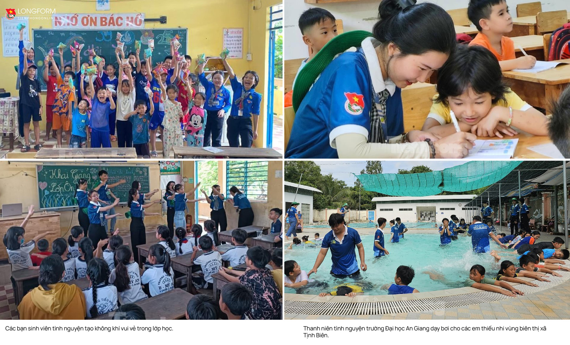 Cuối tháng 7, sân trường vốn vắng vẻ trong mùa hè lại trở nên nhộn nhịp với các hoạt động ôn tập hè cho trẻ em vùng biên tại Trường tiểu học A Nhơn Hưng (Tịnh Biên,An Giang). Ngoài ôn tập hè, các sinh viên tình nguyện tới từ Trường Đại học An Giang (ĐHQG TPHCM) còn tổ chức cho các em vui chơi, dạy làm người có ích, trạng nguyên nhỏ tuổi… để tạo niềm vui, động lực giúp các em tự tin bước vào năm học mới.