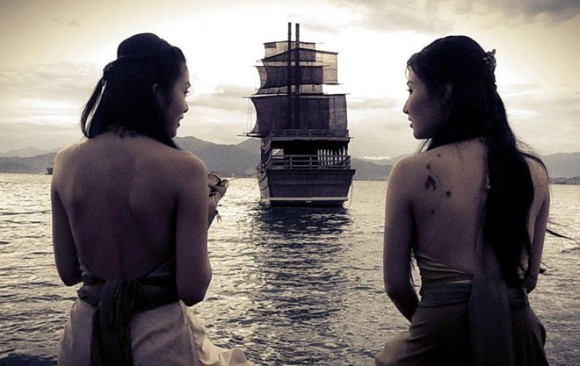 | Cảnh quay nóng bỏng của Diễm My và Phạm Anh Khoa trong Mỹ nhân kế. |