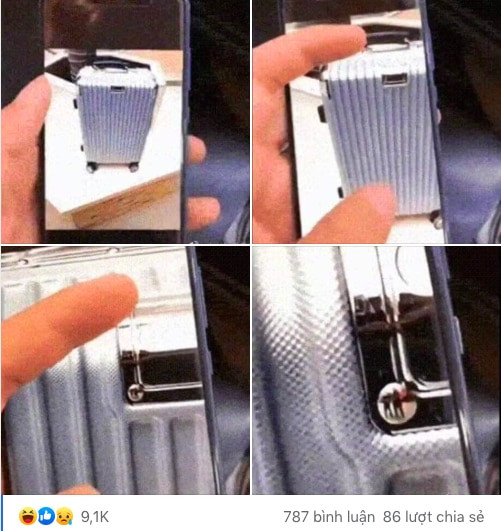 Ngay sau khi nhận ảnh, cô gái đã phóng to hết cỡ chấm tròn kim loại trên vali lên và phát hiện ảnh phản chiếu của bạn trai mình bên cạnh một cô nàng khác. Có lẽ, chàng trai không thể ngờ rằng bạn gái mình tinh mắt và nhanh nhạy đến mức này.
