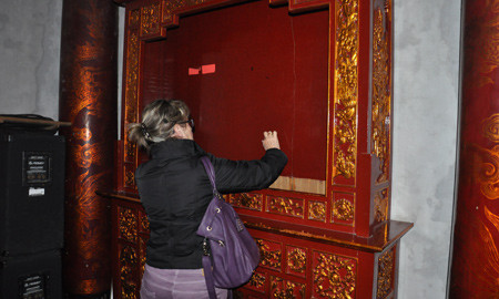 Theo ông Hảo: “Do kho đồ của di tích chật hẹp nên ban quản lí mới sắp xếp chúng ra đây được gần 3 năm. Hành động biến giá để đồ thành bảng vàng đã xuất hiện từ 1-2 năm nay. Chuyện truyền miệng này cũng giống như người dân xoa đầu rùa cầu may mắn vậy”.