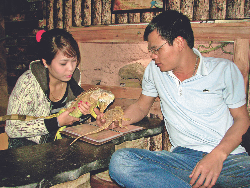 Quán cà phê Pet gần 3 năm hoạt động chưa đạt được mục đích kinh doanh nhưng đã giúp Nghĩa thỏa đam mê nuôi thú, anh thổ lộ. Vợ anh là người hoàn toàn tôn trọng đam mê, sở thích của chồng. Cô con gái nhỏ hơn 2 tuổi lớn lên trong môi trường đầy rẫy thú tung tăng trong nhà nên rất dạn dĩ. Em bé bế tất cả những con thú ở gần không hề sợ hãi. Mải tìm cách bắt một chú sóc lanh lợi, bị sóc nhảy vào mặt, em bé khóc thét nhưng chỉ hai phút sau lại cười khanh khách đuổi bắt những con thú khác. “Cũng may, loài thú này lành tính, không gây bệnh nên thả thoái mái, chỉ sợ khách làm tổn thương hoặc mất thú”, anh nói. Sau lần chuyển quán, anh ấp ủ ý định phát triển thành trang trại chăn nuôi thú trên diện tích khoảng 500m2. Nghĩa dự định sẽ cùng các thành viên CLB pet nghiên cứu, tìm cách ép nở, sinh sản một số loài quý hiếm như rồng Nam Mỹ đồng thời mở rộng các loài rắn, bọ cạp, nhện, kỳ đà, kỳ nhông. Tuy nhiên, để thực hiện được giấc mơ này còn nhiều khó khăn, bởi phải được nhà nước cấp phép. |