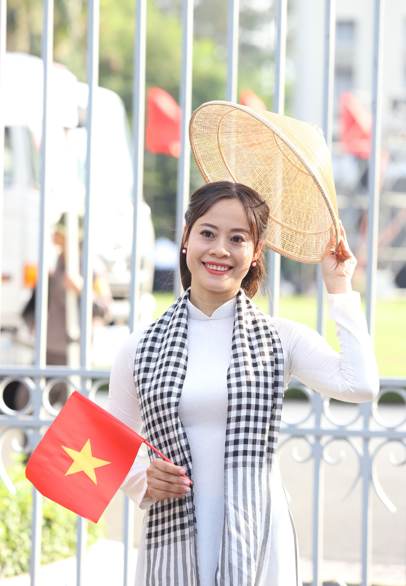 | Bạn Vũ Thị Thùy Trang (giáo viên tại Trường tiểu học Phước Tân 2, TP.Biên Hòa, Đồng Nai) cho biết, đây là lần đầu tiên mặc áo dài đến Dinh Độc Lập chụp ảnh, trong tâm thế hướng đến ngày lễ lớn của đất nước. |