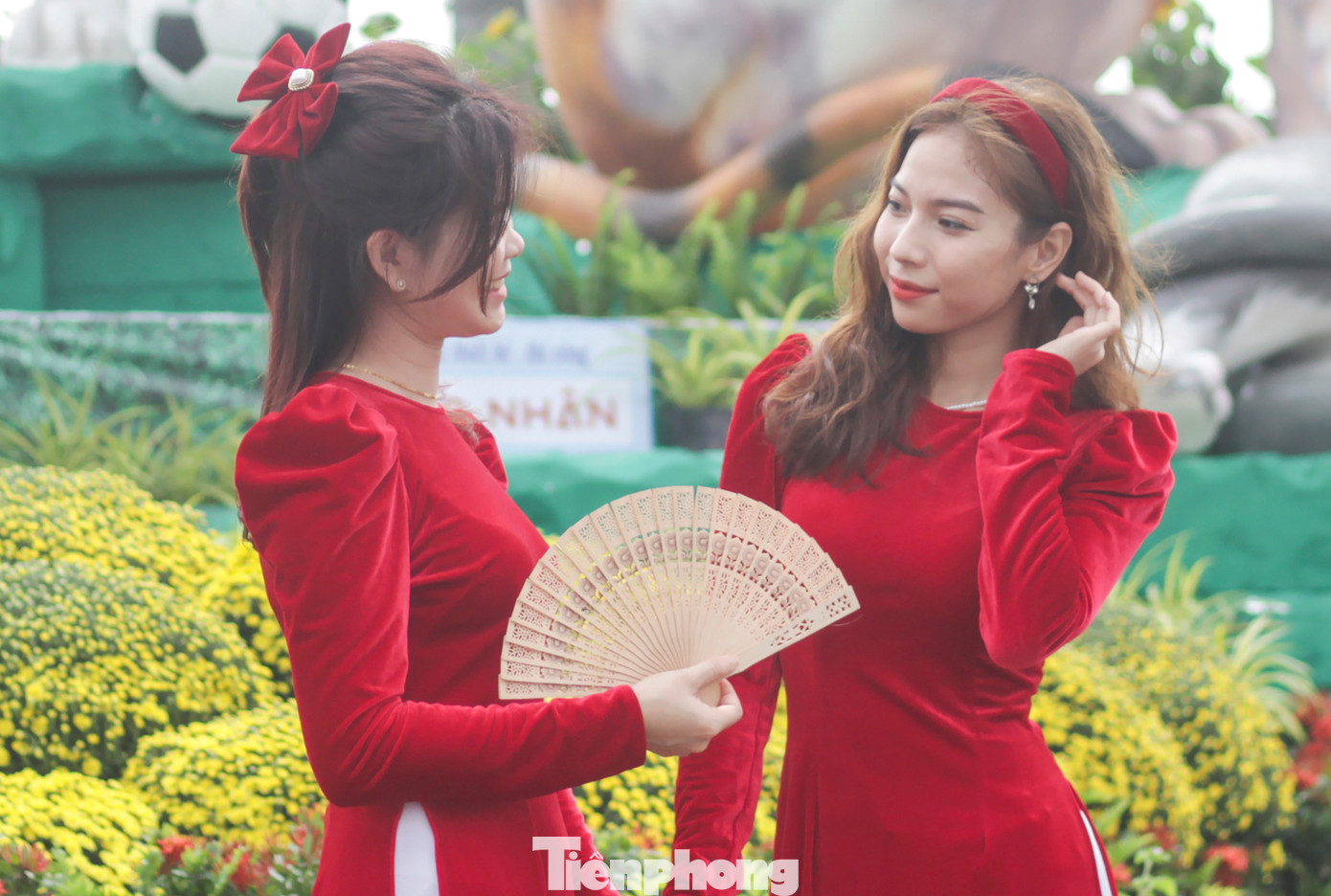 | Bạn Nguyễn Quỳnh Phượng (21 tuổi, TP Quy Nhơn), chia sẻ: "Tết đến xuân về nên cảm xúc nôn nao, hôm nay tranh thủ trời nắng đẹp nên mình ra chụp vài tấm làm kỷ niệm. Mọi năm trước cũng thế, cứ đến dịp khánh thành biểu tượng linh vật là mình cùng với nhóm bạn ra check-in, kỷ niệm". |