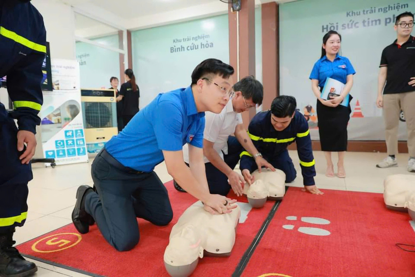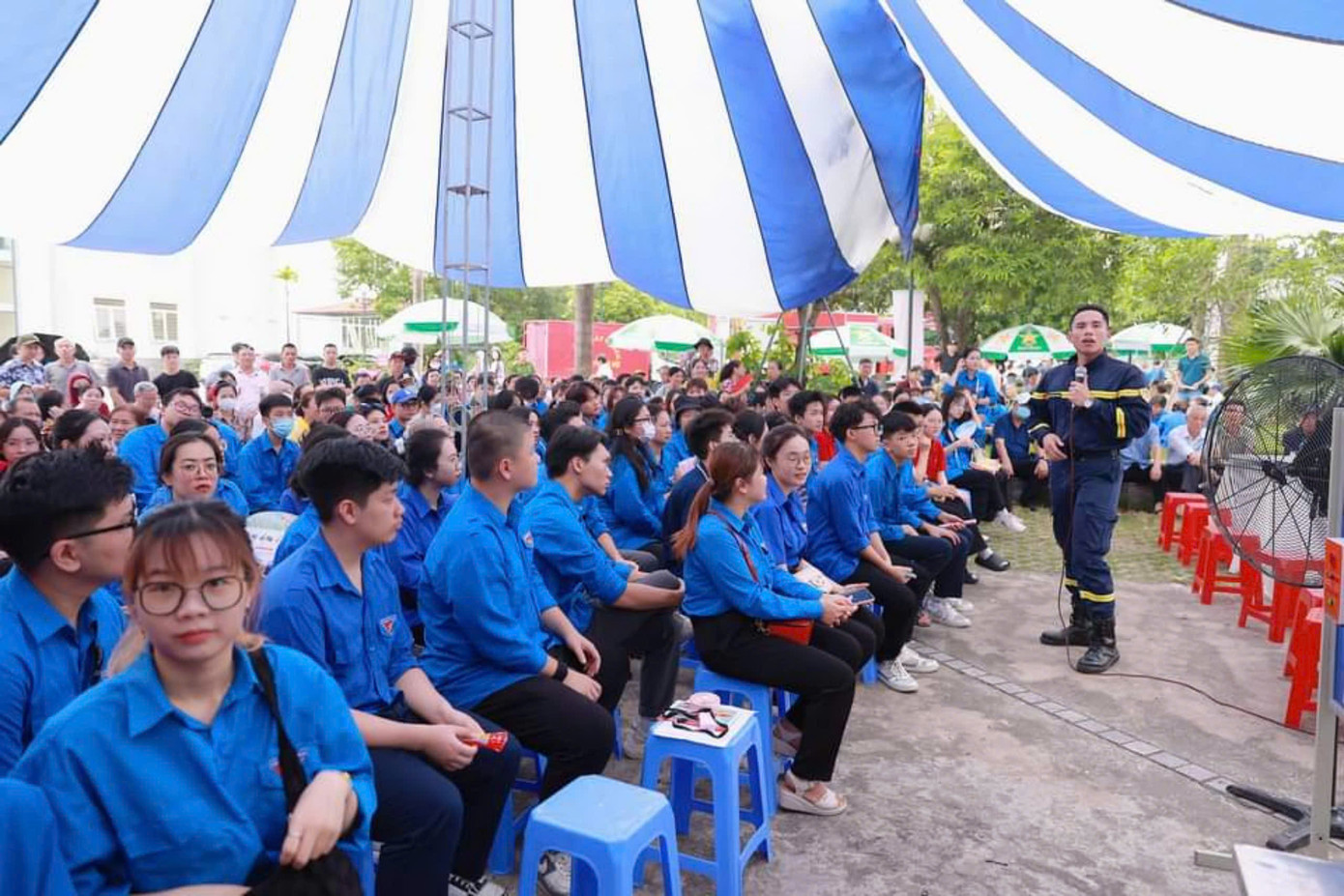 Buổi tập huấn nhằm trang bị kỹ năng, kiến thức giúp bạn trẻ tổ chức cứu chữa có hiệu quả các vụ cháy, nổ và làm tốt công tác cứu nạn, cứu hộ khi xảy ra sự cố.