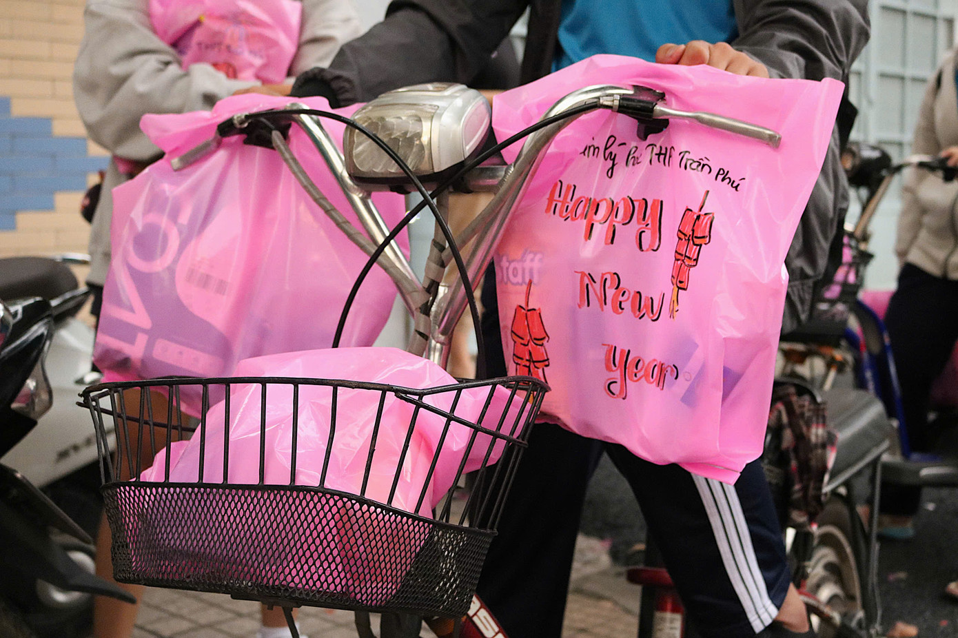 Chiều tối 31/12, trước cổng trường THPT Trần Phú, khoảng 10 chiếc xe bắt đầu lăn bánh, chở theo những túi quà màu sắc sặc sỡ cùng tình yêu thương của những bạn trẻ.