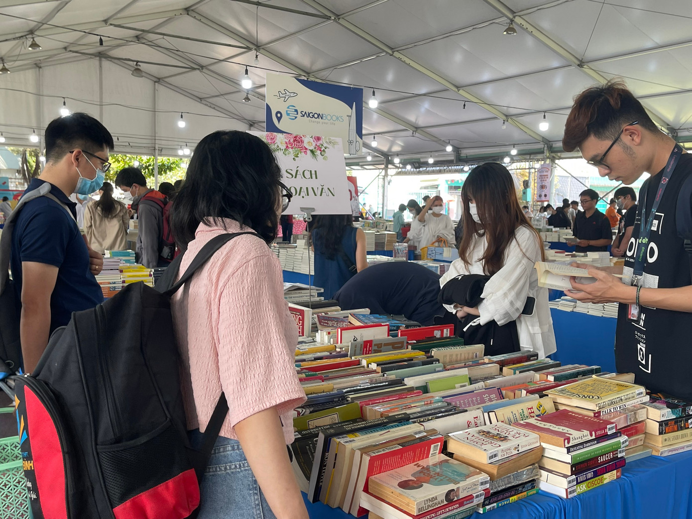 | Nhiều bạn sinh viên các trường tại TP. HCM đã đến hội chợ để 'săn sách'. |