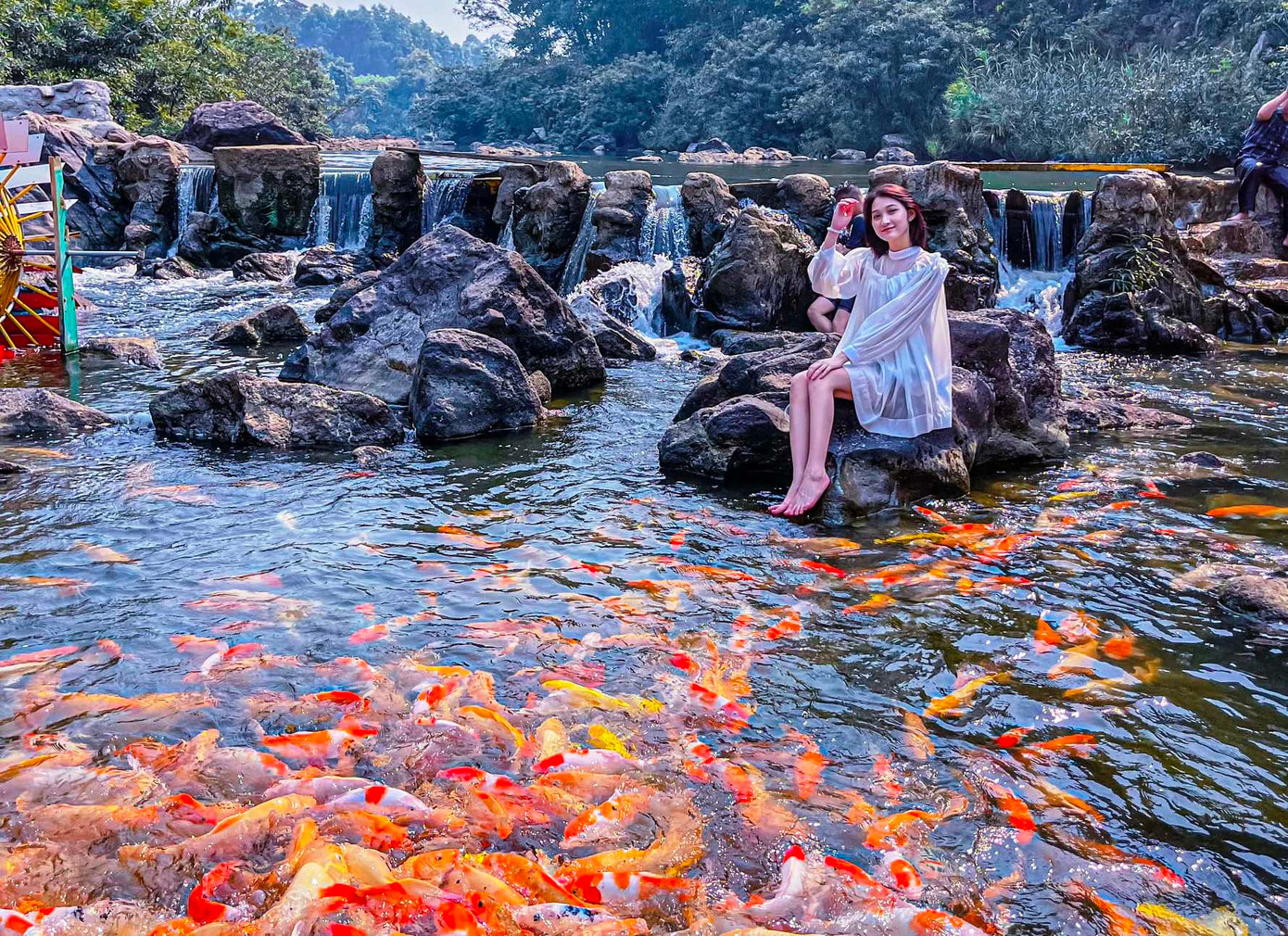 | Du khách có thể vui đùa, ngắm đàn cá thỏa thích. |