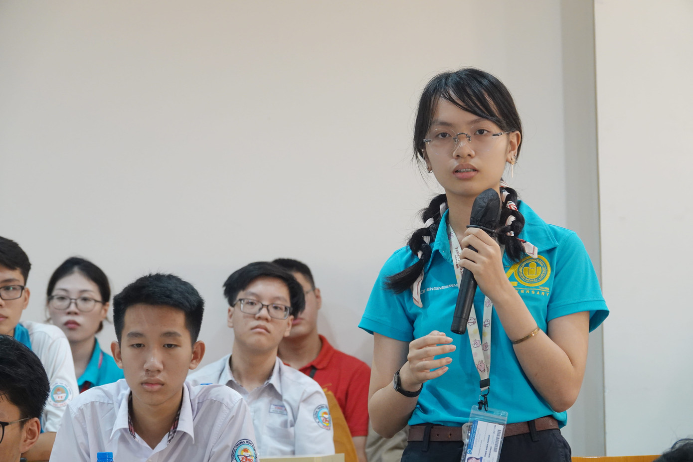 Nữ sinh viên năm thứ nhất Phạm Ngân Thương của ngành Kỹ thuật Không gian (trường ĐH Quốc tế) cảm thấy rất vinh dự khi được lắng nghe chia sẻ của Tổng Giám đốc Đài quan sát Đông Á. Đam mê lĩnh vực thiên văn vật lý từ năm lớp 10, Ngân Thương đã xét tuyển vào ngành Kỹ thuật Không gian của trường. Cô cũng dự định sau khi tốt nghiệp sẽ tiếp tục theo học nghiên cứu sinh trong lĩnh vực vật lý thiên văn.