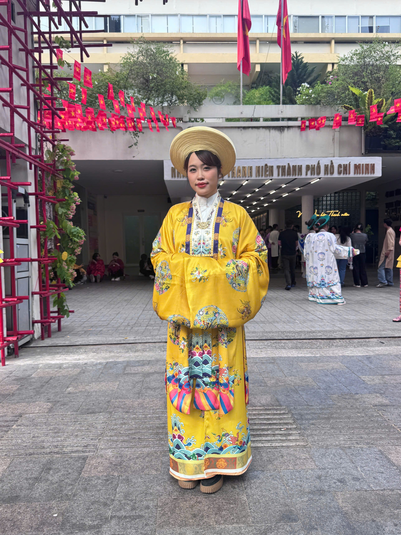 Bạn Hoàng Yến (Trường ĐH KHXH&NV TPHCM) chia sẻ: “Em bất ngờ khi thấy áo ngũ thân nam giới cầu kỳ không kém nữ phục. Mỗi nút cài, đường viền đều ẩn chứa triết lý âm dương, ngũ hành của cha ông.”