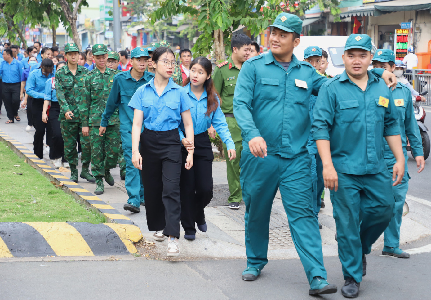 | Bạn trẻ đi bộ sau lễ phát động. |
