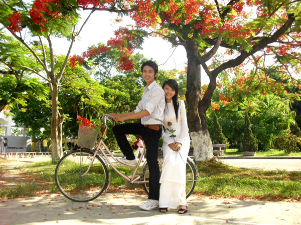Nhóm bạn từ xứ Huế mộng mơ đã gửi về chuyên mục Khoảnh khắc của bạn những tình cảm khó quên ấy! Đó là bạn Trần Minh Tây, Nguyễn Thị Thùy Linh và Cao Thị Hải Vân, sinh viên khoa Ngữ Văn - Trường Đại học Sư phạm Huế bên những cây phượng vĩ, những rặng liễu buông mình trong sắc vàng của những ngày nắng hạ vàng.