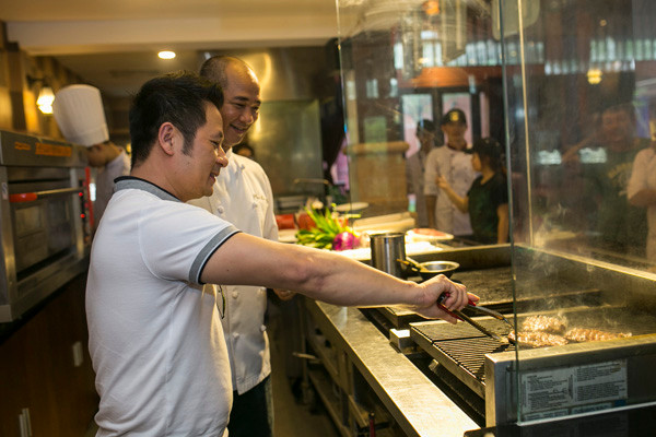 Dưới sự hướng dẫn của vua bếp Phạm Tuấn Hải, ca sĩ Bằng Kiều đã thích thú tự tay thực hiện món bò bít tết thơm lừng. Món bít tết mềm, cộng thêm nước sốt lạ thơm khiến anh tấm tắc khen mãi.