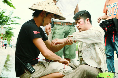 Khán giả tò mò dừng lại bên đường xem Bằng Kiều đóng phim.