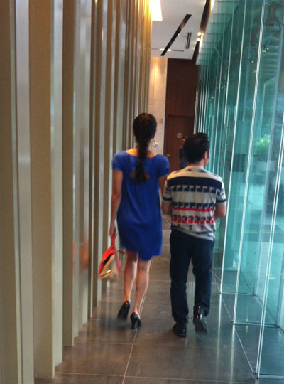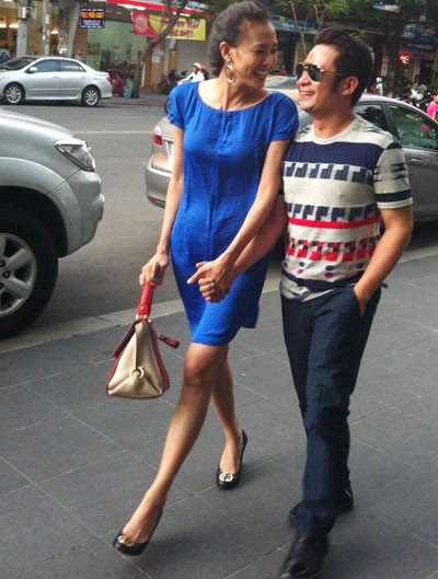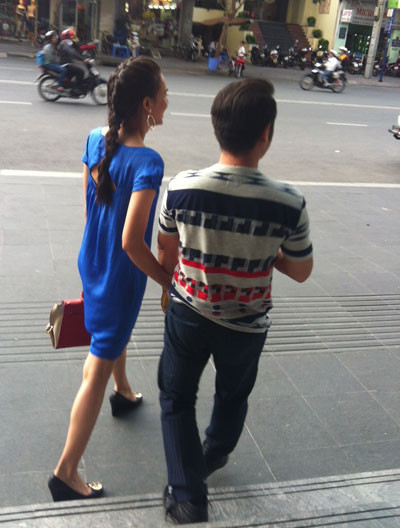 Bằng Kiều và Dương Mỹ Linh nắm tay cùng đi trên phố không để ý đến sự chú ý của mọi người xung quanh.