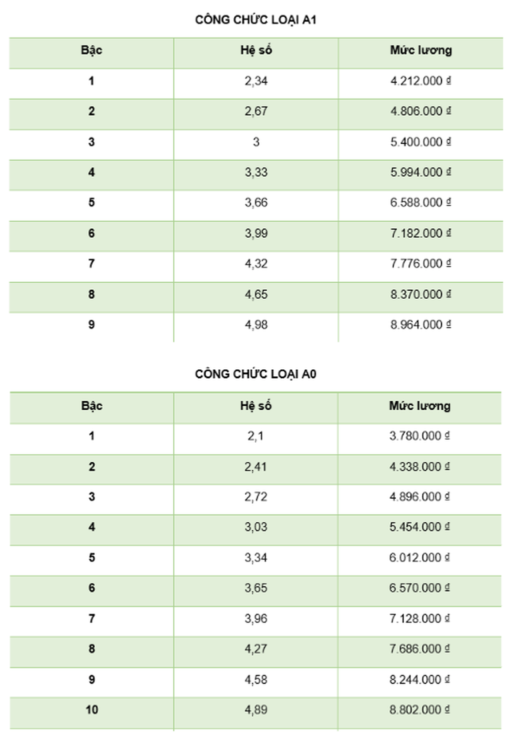 2 bảng lương công chức sau cải cách