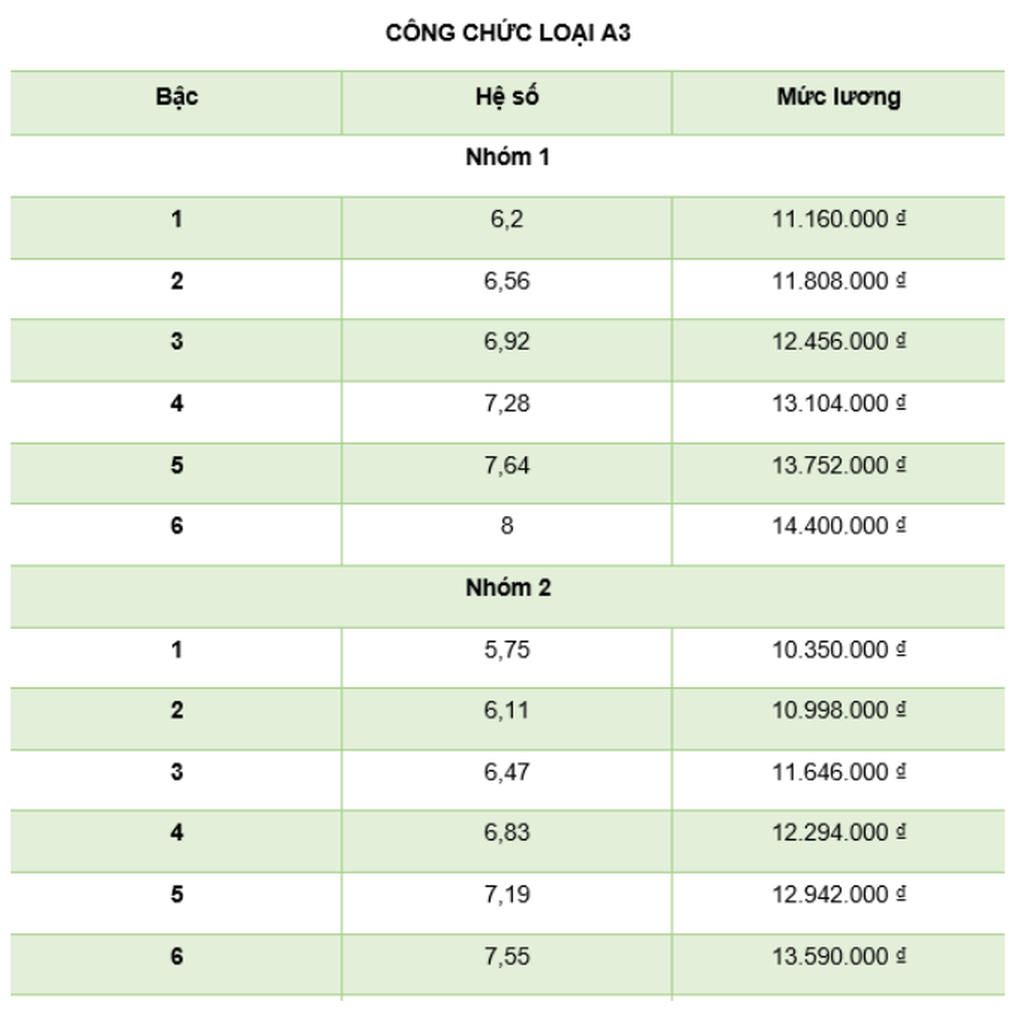 Chi tiết bảng lương công chức từ 1/7/2023:
