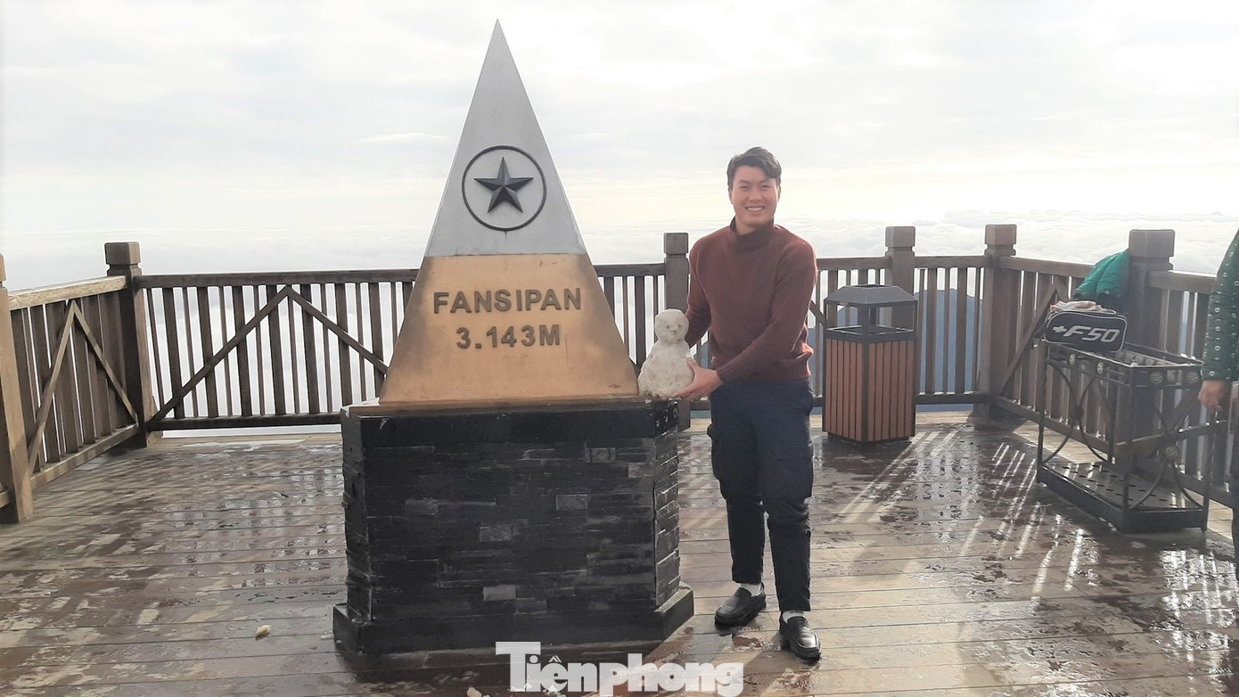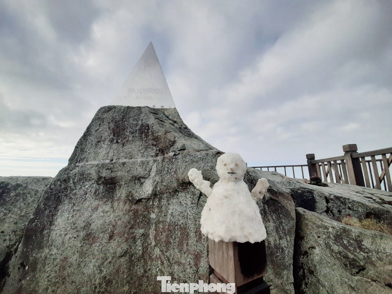 Du khách làm người tuyết trên đỉnh Fansipan.