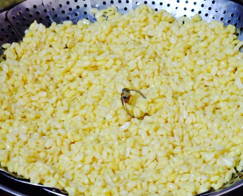 Bước 1: Bạn chuẩn bị nhân bánh chay trước vì mất nhiều thời gian hơn. Đậu xanh khô đã bỏ vỏ, bạn đem ngâm nước trước 2 tiếng cho đậu mềm. Đậu sau khi ngâm mềm bạn cho lên xửng để hấp chín.