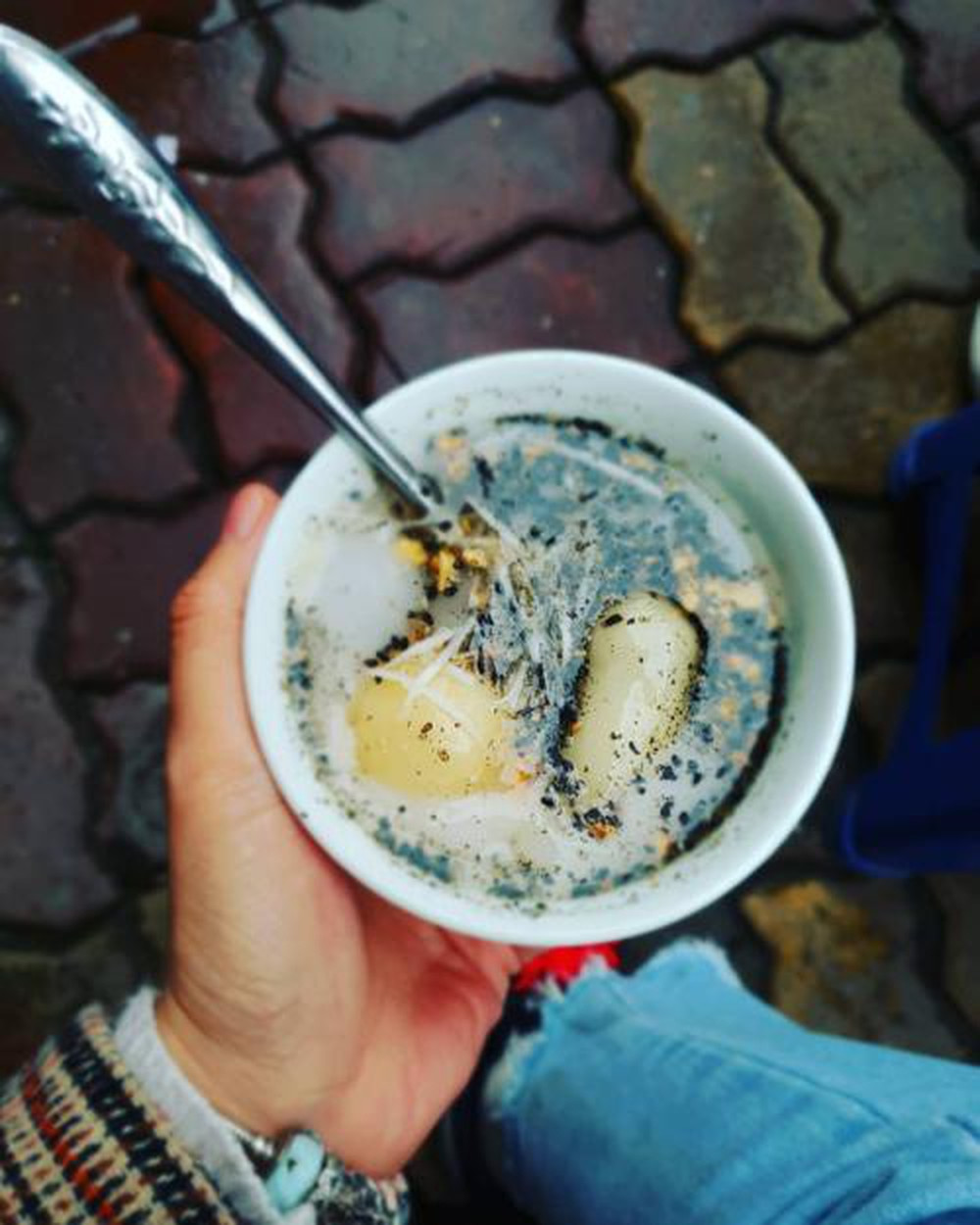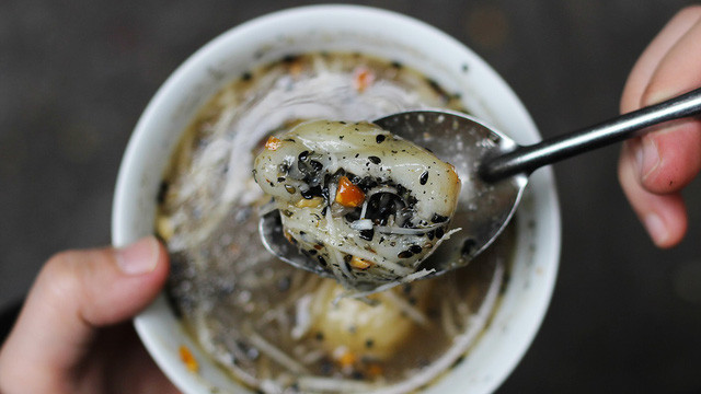 Sủi dìn cũng được ăn nóng hôi hổi. Bát sủi dìn bưng ra phải có thứ nước sanh sánh ngọt lịm, khói tỏa nghi ngút thơm dậy mùi gừng. Trong đó để chừng 5-6 viên sủi dìn tròn xoe, trắng ngà ngà, được phủ bởi một lớp vừng đen, lạc rang và dừa tươi nạo.