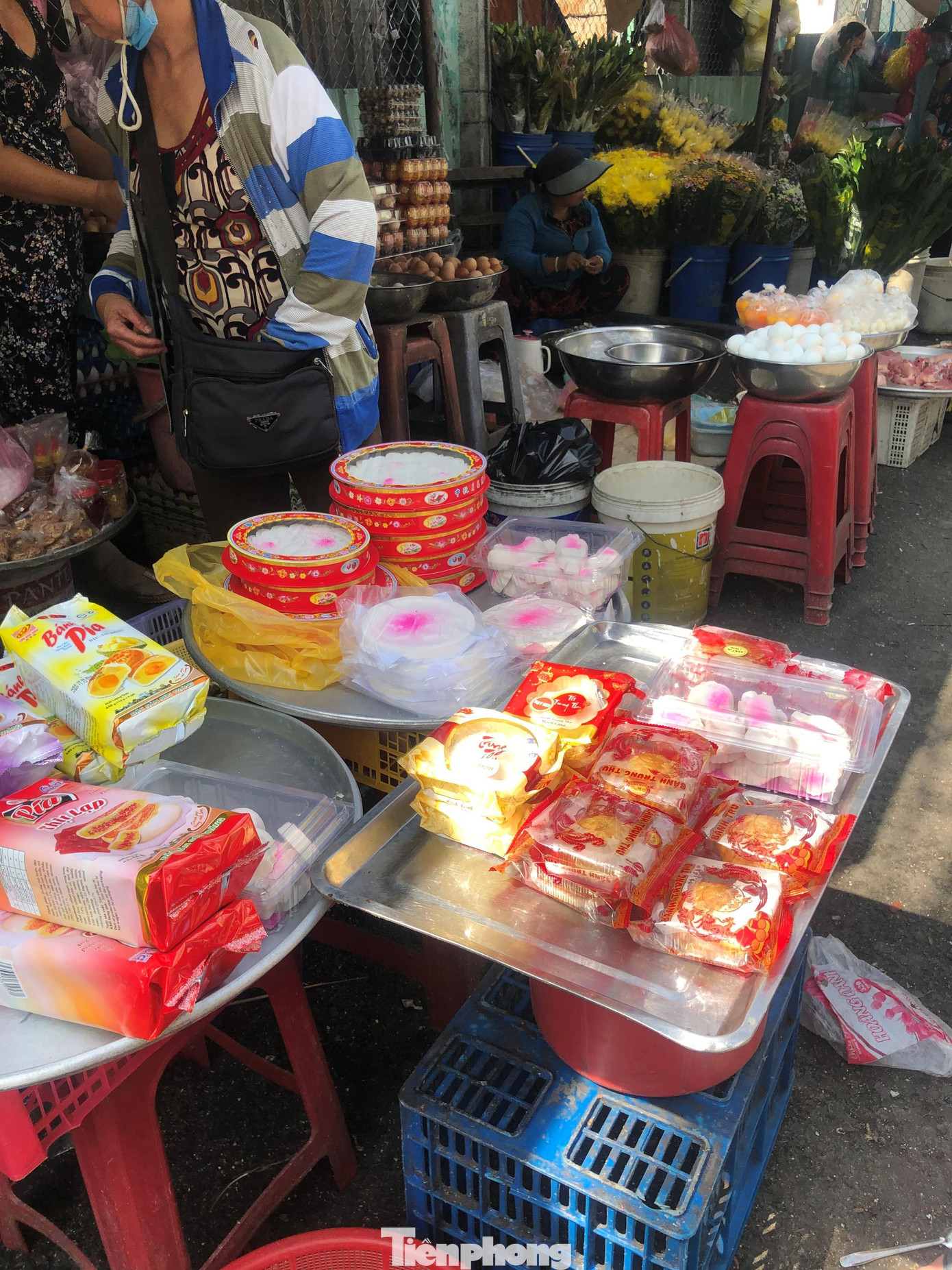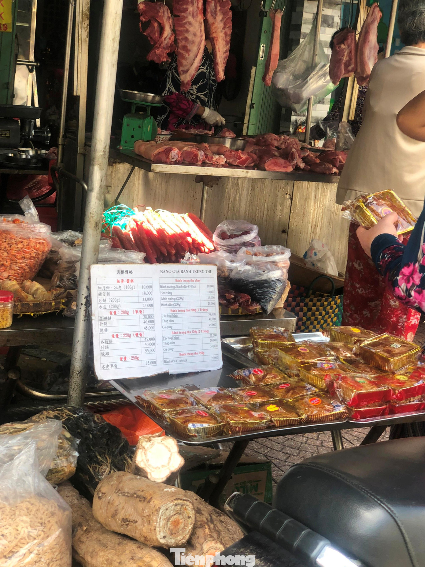 Trong khi đó, bên hông chợ Bình Tây (Q.6), nhiều tiểu thương cũng bày đủ các loại bánh trung thu, bánh in không nhãn mác hoặc những thương hiệu rất lạ, giá cực rẻ để chào mời khách mua.