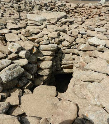 Các bức tường có độ dày khá đồng nhất, từ 3,2 đến 3,3 m. Những chuyên gia khảo cổ chưa rõ ụ đá để chôn cất ở chính giữa công trình đá cự thạch tiền sử này có ra đời cùng thời với những vòng tròn đá hay không. Bãi đá ở trung tâm cao 5 m, đường kính 20 - 25 m.