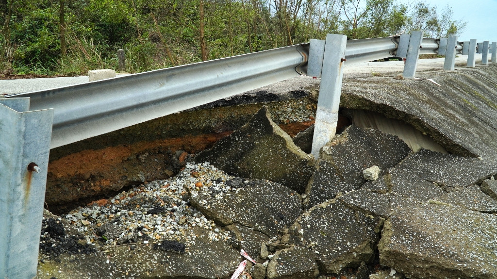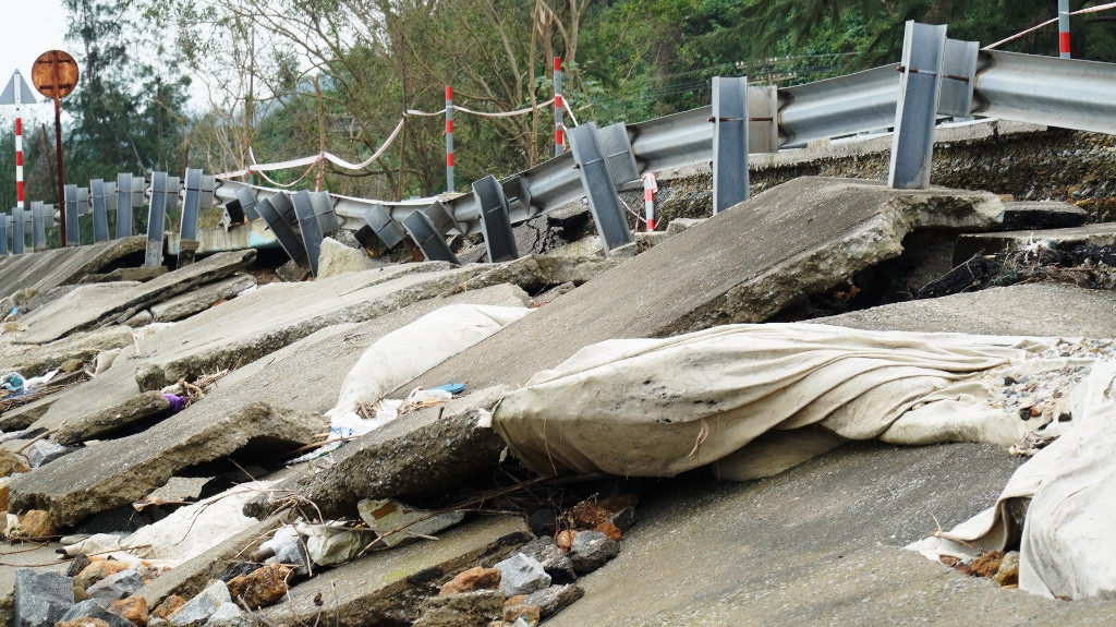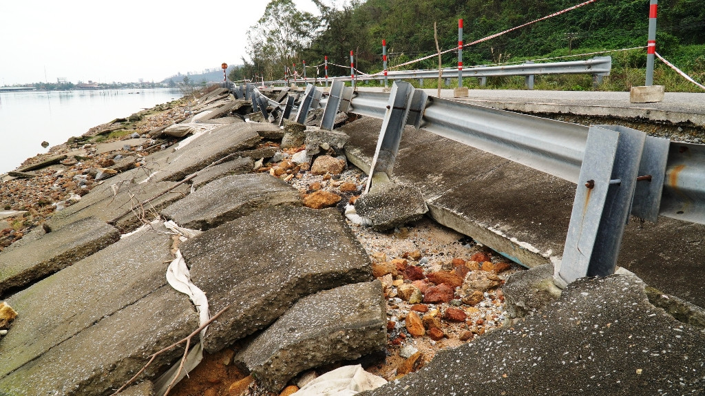 Cụ thể, một số đoạn của tuyến đường bị gãy vỡ, sụp mái taluy bê tông xi măng, xói lở ăn sâu vào mặt đường bê tông nhựa. Nhiều đoạn tường hộ lan bằng tôn lượn sóng bị nghiêng, sụp đổ… Giá trị thiệt hại ước khoảng 3,5 tỷ đồng.