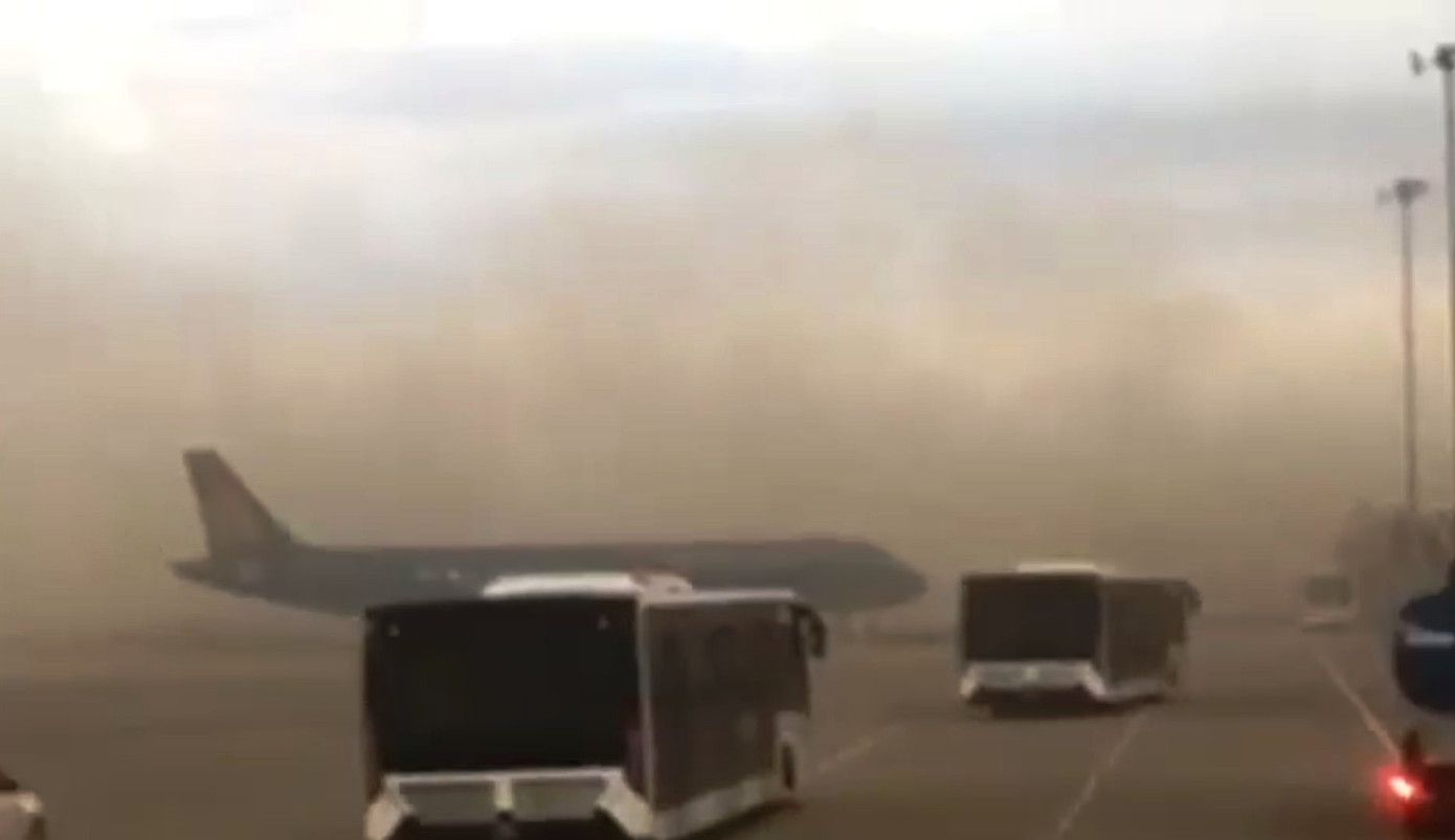 Thời điểm trên, tại sân bay Phú Bài có máy bay chở khách dừng đỗ, nhiều xe ô tô vào bên trong làm nhiệm vụ. Lúc này, bụi từ công trường xây dựng nhà ga T2 gần đó phát tán lên dày đặc, che mờ luôn chiếc xe thang dùng để chở hành khách. Toàn bộ cảnh vật phía sau chiếc máy bay cũng bị bụi mù dày đặc che lấp. Đây là một hình ảnh hết sức đáng sợ tại khu vực các máy bay dân dụng thường xuyên cất, hạ cánh trong ngày...