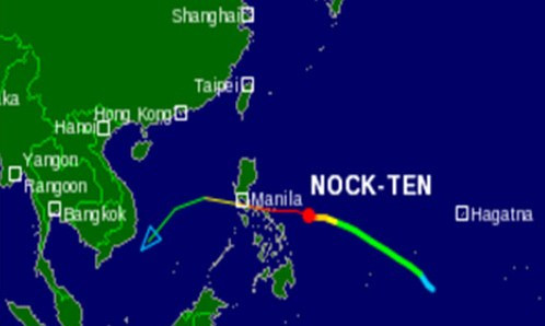 Được hình thành ở phía đông Philippines từ khoảng ngày 20/12, bão Nock-ten đã mạnh lên và 13h chiều nay cách bờ biển miền Trung Philippines khoảng 400 km, sức gió mạnh nhất đạt 180 km/h, tương đương cấp 15.