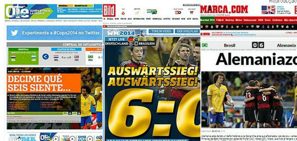 Từ nửa vòng trái đất tờ Gazzetta dello Sport của Ý đã viết, thất bại 1-7 của Brazil trước Đức là một trận thua kỷ lục với cái tít: "Kết thúc giấc mơ World Cup cho Brazil".
