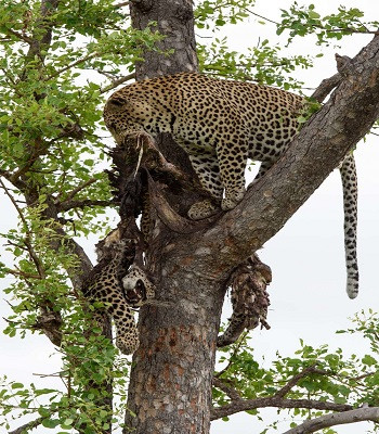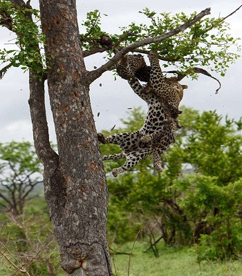 Sergey Gorshkov, nhiếp ảnh gia người Nga chuyên chụp động vật hoang dã, ghi lại khoảnh khắc con báo đốm 60 kg lôi xác đồng loại từ trên cây xuống và ăn thịt, IFL Sciencehôm 18/11 đưa tin. Loạt ảnh được Gorshkov chụp tại khu bảo tồn Londolozi Private Game Reserve ở Nam Phi.