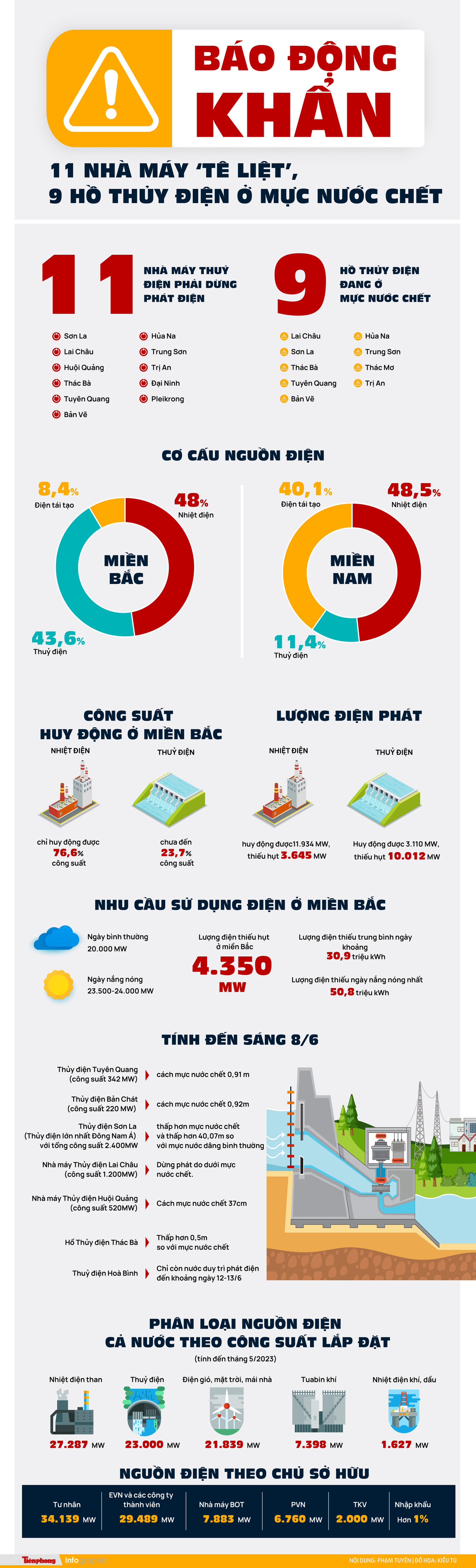 TPO - Cục Kỹ thuật an toàn và Môi trường công nghiệp - Bộ Công Thương cho biết, hạn hán kéo dài đã làm 11 nhà máy thủy điện lớn nhất Việt Nam phải dừng phát điện, 9 hồ thủy điện ở mực nước chết, gây thiếu điện nghiêm trọng cho sản xuất và sinh hoạt.