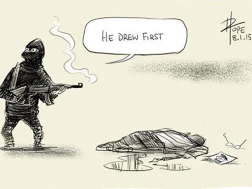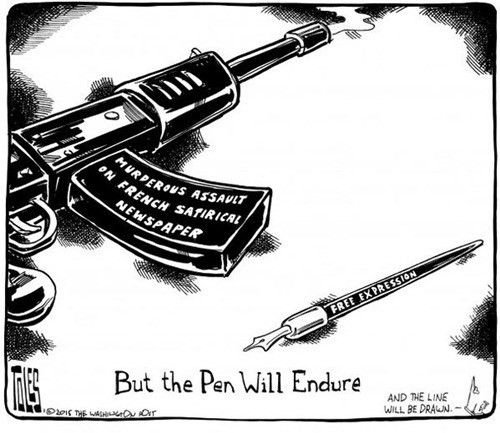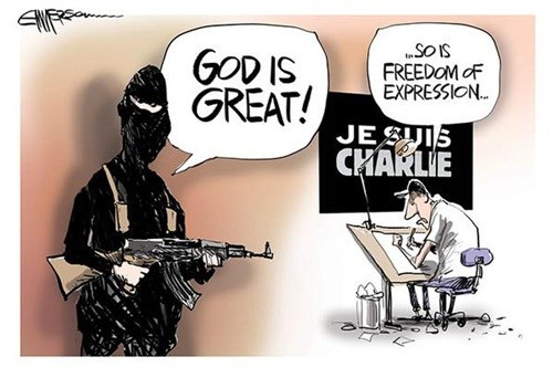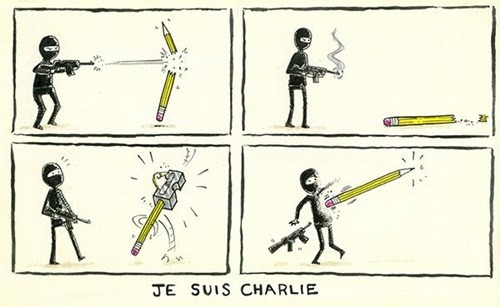 Đây được xem là tuyên bố đầy thách thức của giới cầm bút với quyền “tự do ngôn luận” mà Tổng thống Pháp Francois Hollande đề cập tới sau vụ các nhà báo bị thảm sát ngay tại Paris bởi các tay súng bịt mặt bằng khăn đen.
