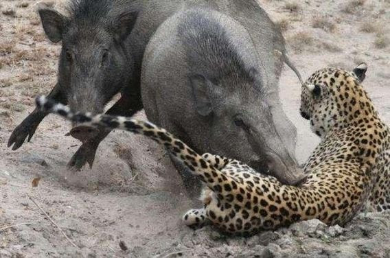 Báo hoa bị lợn rừng đánh hội đồng không thương tiếc
