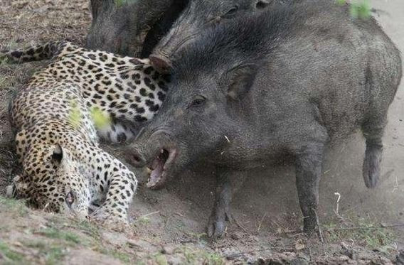 Dù là loài săn mồi hàng đầu nhưng báo hoa đã chịu thảm bại do quyết định sai lầm và bị đàn lợn rừng đánh hội đồng không thương tiếc.
