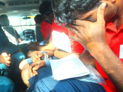 Trong số đó, 24 nghi can, trong độ tuổi từ 22 đến 40 đã được đưa tới tòa án trong 3 xe cảnh sát.